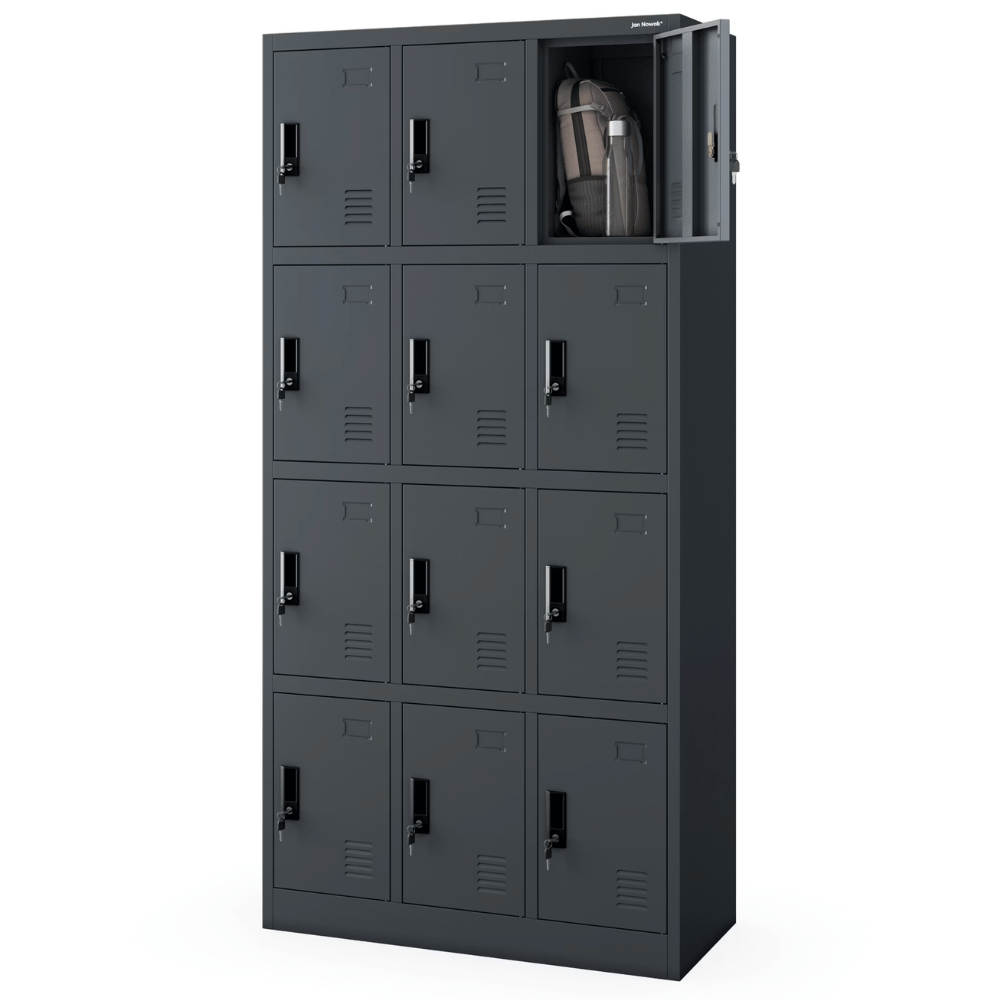 DELUKE Schließfachschrank Spind BERN - 12 Fächer, Etikettenhalter | Wertfachschrank Umkleideschrank Metall Kleiderspind, 185x90x40cm Anthrazit