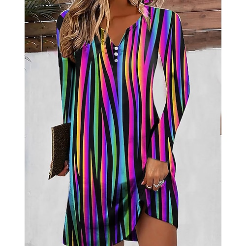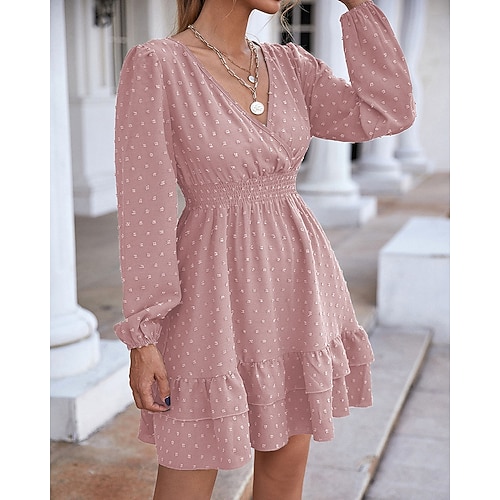 Per donna Mini Abito Vestito Casual Elegante Moda Moderno Quotidiano Vacanza Uscire Vestibilità regolare Grafico Manica Lunga Scollo a V Nero Bianco Rosa Verde Estate Primavera Autunno
