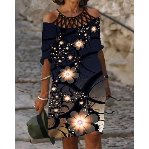 Per donna Mini Abito Vestito Casual Abito a Tubino Abito Stampato Moda Moderno Quotidiano All'aperto Vacanza Vestibilità regolare Floreale Geometrico Farfalla Mezza Manica Girocollo Rosa polveroso