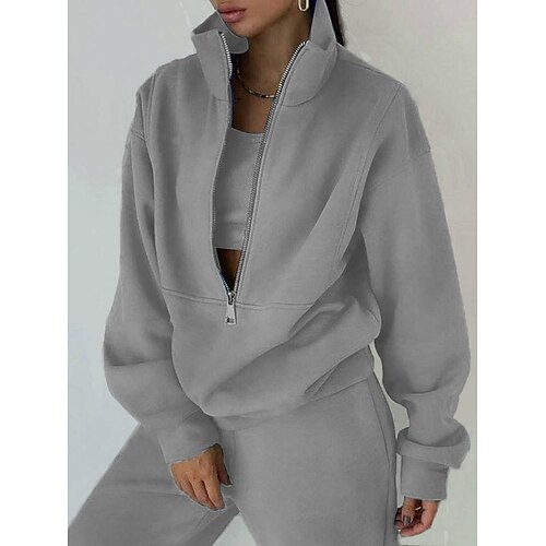 Per donna Caldo Sportivo Felpa con cappuccio Tuta da ginnastica Completi di pantaloni Jogging Pantaloni Manica lunga Con cappuccio Tinta unica A cordoncino Esterno Informale Nero Rosa Vino Autunno