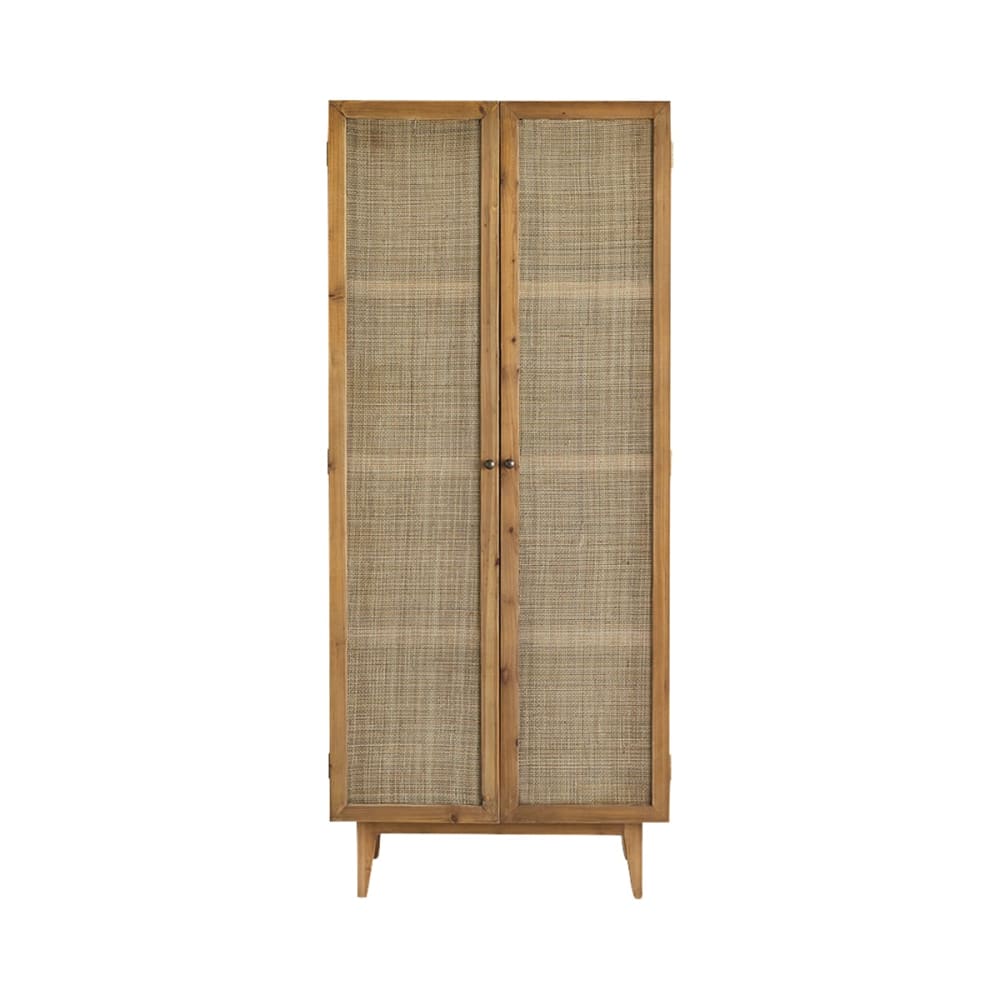 Armadio in legno di pino e rattan