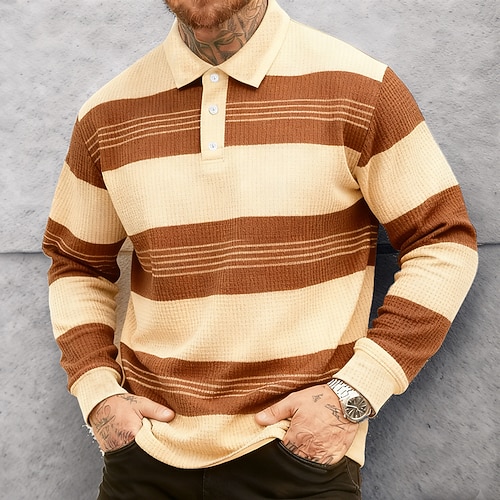 Per uomo A righe Polo da rugby Polo a maglia intrecciata Manica Lunga Magliette polo Camicie con Colletto Casual All'aperto Athleisure Stampa 3D Primavera Autunno Inverno Giallo Blu Marrone