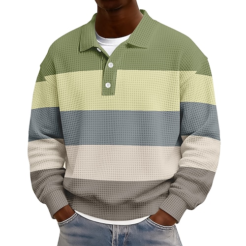 Per uomo Strisce orizzontali Magliette Polo a Nido d'Ape Polo da rugby Testurizzato Manica Lunga Magliette polo Bavero Abbigliamento Sportivo Casual Scuola Athleisure Abbigliamento quotidiano Stampa