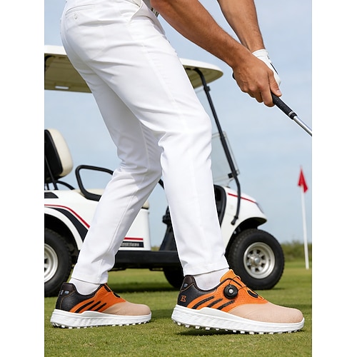 scarpe da golf da uomo arancioni e bianche con presa migliorata, calzature alla moda e comode, perfette per campi da golf e sport all'aria aperta