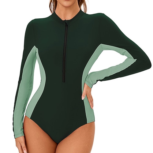 Per donna Top sottomuta Costume Intero Patchwork Asciugatura Rapida Leggero Traspirante Manica Lunga Body costume da bagno Cerniera Frontale Surf Spiaggia Sport Acquatici Estate
