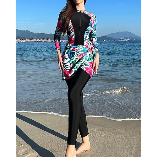 Per donna Top sottomuta Costumi da bagno interi Muta da sub Floreale UPF50 Asciugatura Rapida Alta elasticità Manica Lunga Costume da Bagno Cerniera Frontale Surf Immersione Snorkeling Estate