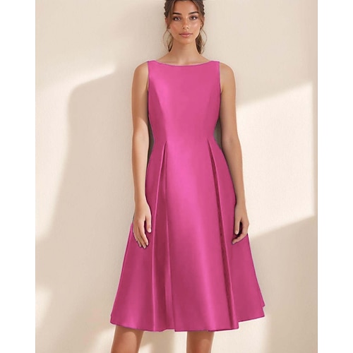 Linea ad A Lunghezza Tè Abiti da Ballo Elegante Vintage Festa Senza Maniche Collo gioiello Festa serale Formale Tasca Raso Pizzo con Pieghe Tasca