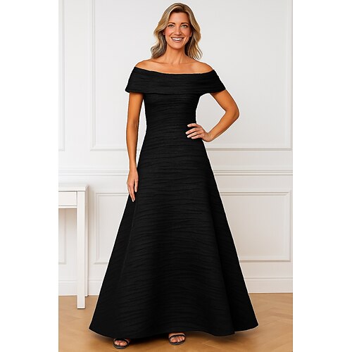 Linea ad A Lunghezza al pavimento Abito da Sera Da principessa Abito formale Elegante Scintillante Setoso Manica Corta Senza Spalle Matrimonio Formale Tasca Taffetà con Tasca