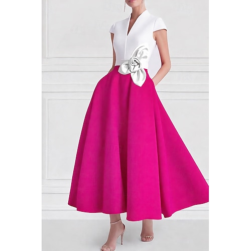 Linea ad A Lunghezza alla caviglia Abiti da Cocktail Abiti da festa Elegante Monocolore Setoso Manica Corta Scollo a V Matrimonio Formale Tasca Raso con Tasca