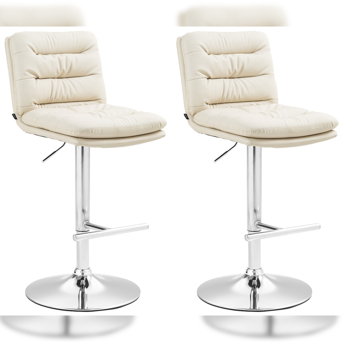 DELUKE® Barhocker 2er Set TURIN - Creme, Kunstleder, Chrom | Barhocker mit Lehne Barstuhl Tresenhocker Tresenstuhl Kneipenhocker Kneipenstuhl