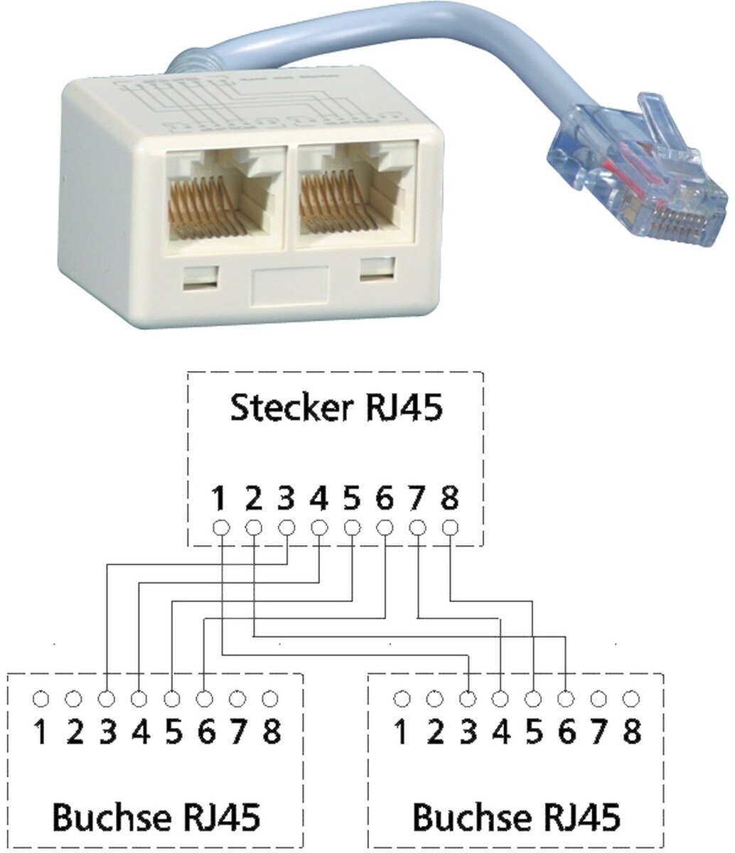Metz Connect Adapter UAE - RJ45-Stecker auf 2xRJ45-Buchse 8(4)