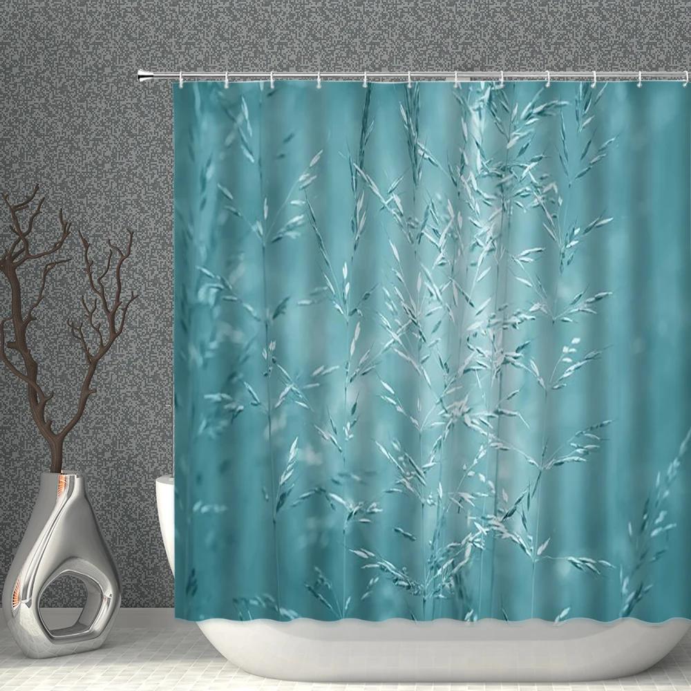 3D Duschdraperier Turkos Geometrisk Gradient Oregelbundet Tryckt Vattentätt Badrumsdraperi Tyg Med Krok Hemdekoration