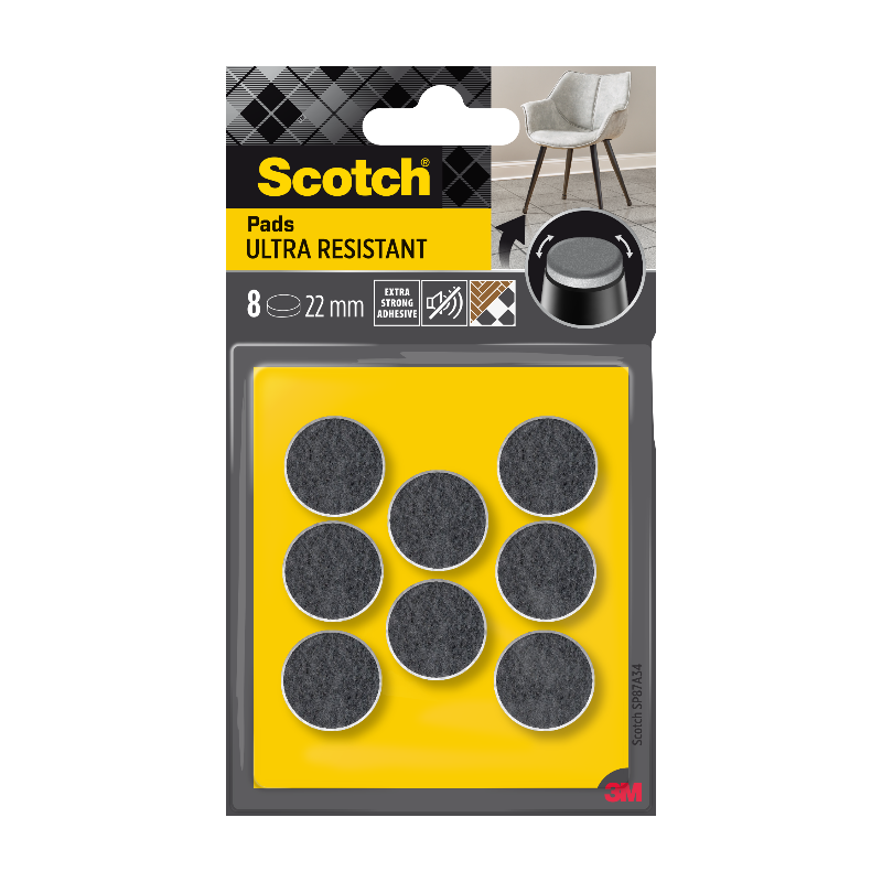 Scotch®Patin feutre bi-matière adhésif arrondi Gris / Blanc Ø 22 mm