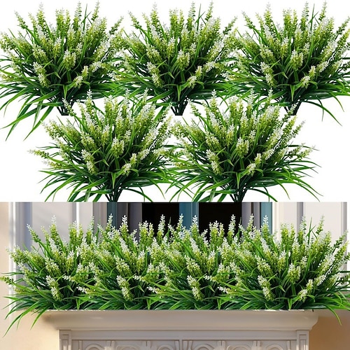 24 mazzi di fiori di lavanda artificiali per piante da esterno, lavanda finta, erba di scimmia finta in plastica per veranda, finestra, giardino, ufficio, patio