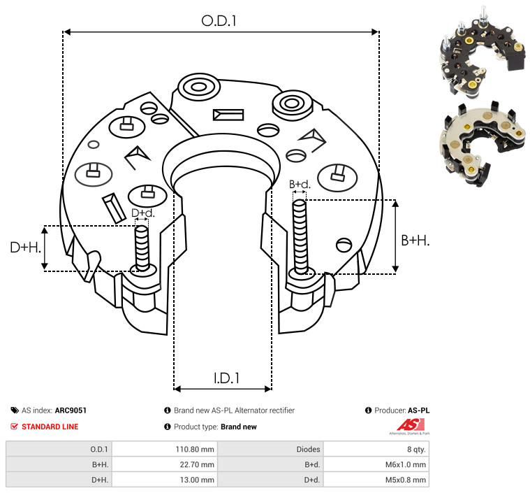 AS-PL Gleichrichter, Generator ARC9051 Universal 110,80mm