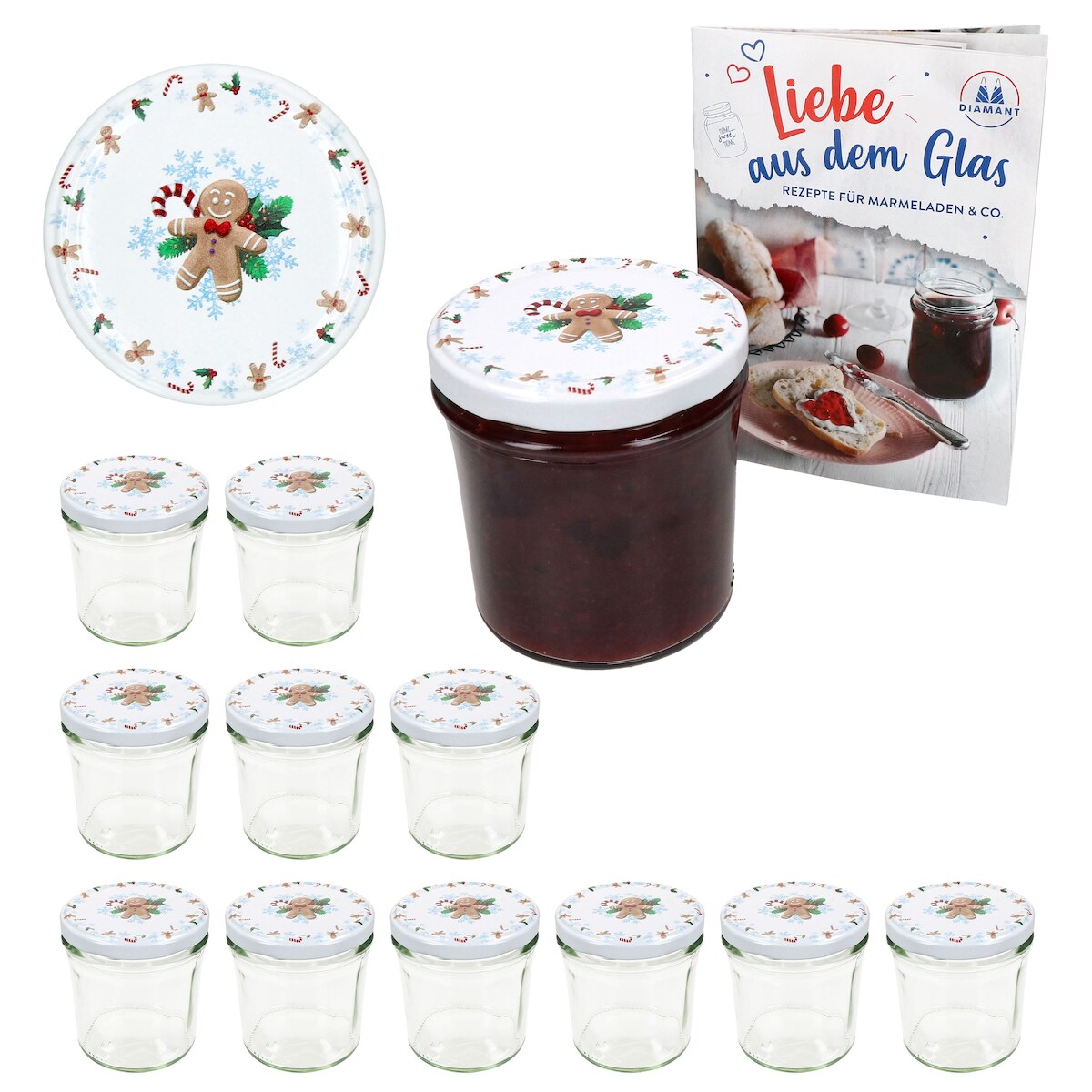 12er Set Sturzglas 350ml Einmachglas + TO-Deckel 82 Candyman eisblau + Heft
