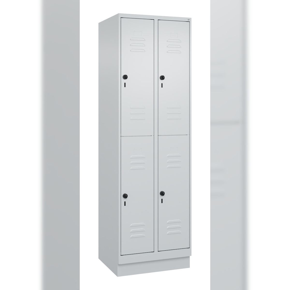 C+P Spind Classic PLUS, Sockel, 4 Abteile, HxBxT 195x120x50cm, Zylinderschloss, Hellgrau/Rubinrot von PROREGAL