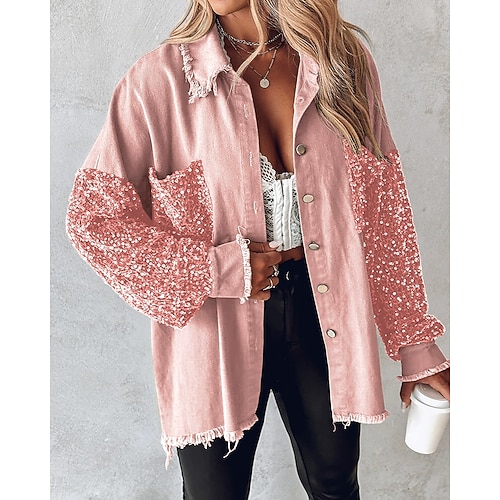 Per donna Giacca Casual Confortevole Traspirante Tasca Bottoni Casual Blocco di colori Vacanza Streetwear Casuale Abbigliamento quotidiano Monopetto Lungo Collo ripiegato Vestibilità comoda Manica