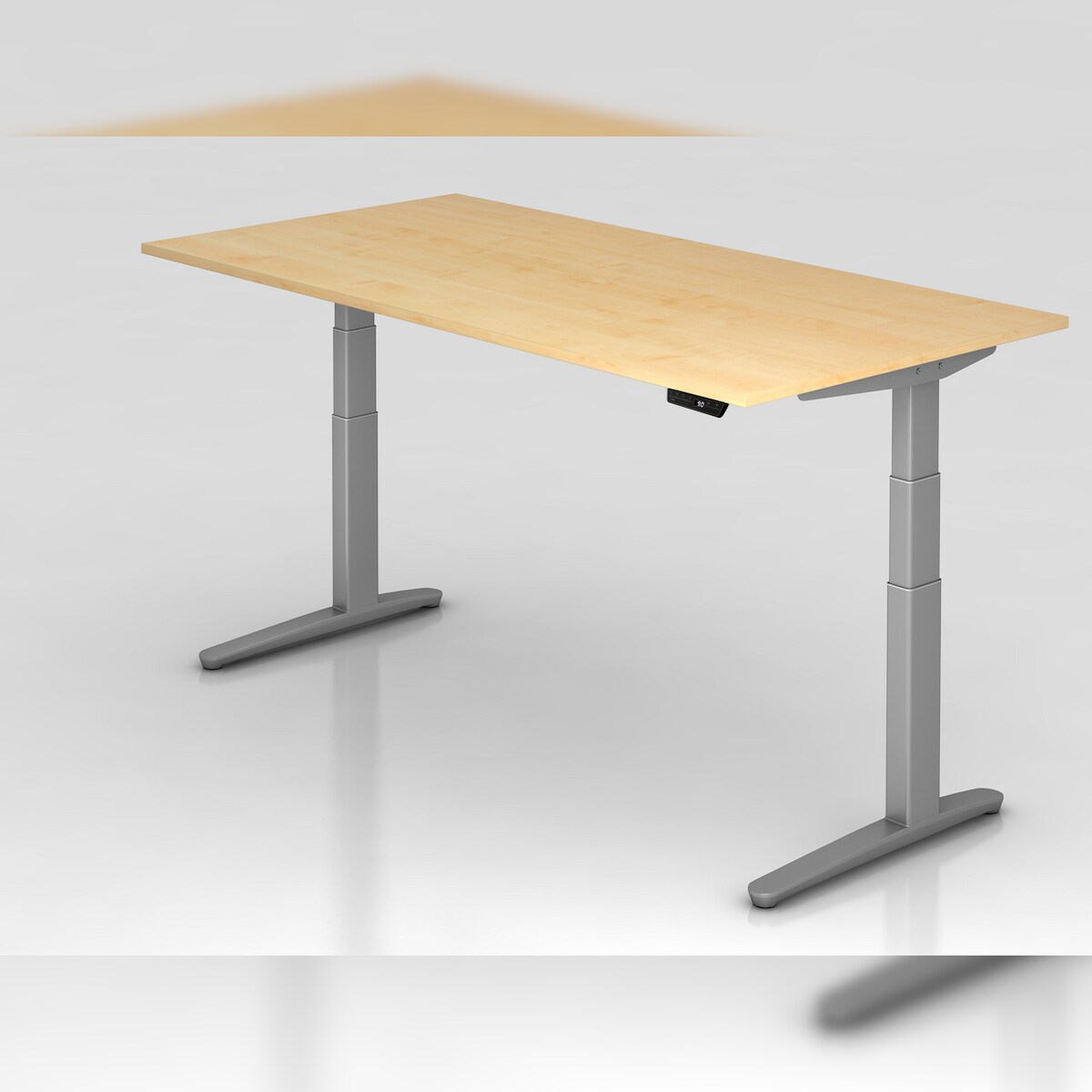kaiserkraft Schreibtisch BOTTOM-UP, elektrisch höhenverstellbar, gerade, BxT 1800 x 900 mm, Ahorn/silber