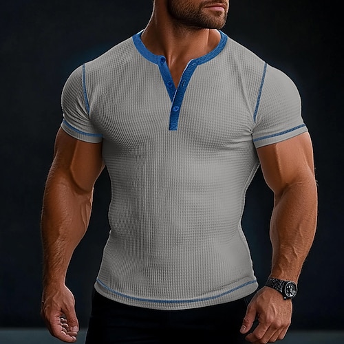 Per uomo Maglia Henley a nido d'ape Maglietta Manica Corta Henley Estate Tutte le stagioni Tinta unica Testurizzato Vintage Sportivo Bottoni All'aperto Casuale Quotidiano Bianco Blu Marrone Maglietta