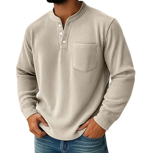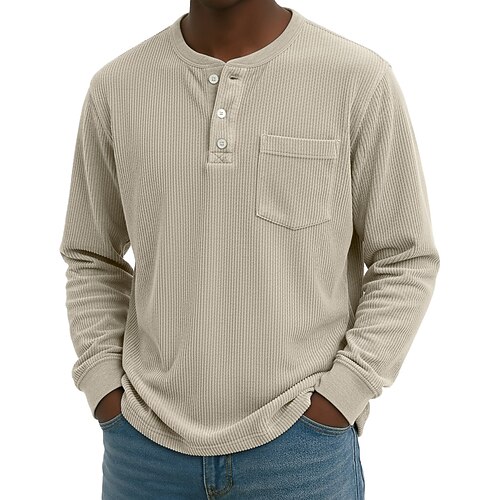Per uomo Camicia di Velluto a Coste Maglia Henley Maglietta Manica Lunga Tinta unica Semplice Testurizzato Moda Designer Casual Tasca Bottoni Caldo Henley Casuale Quotidiano All'aperto Estate Autunno