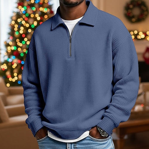 Per uomo Magliette Polo a Nido d'Ape Testurizzato All'aperto Casual Zip a un quarto Manica Lunga Moda Moderno Tinta unica Testurizzato Lavorato a maglia Primavera Autunno Tutte le stagioni