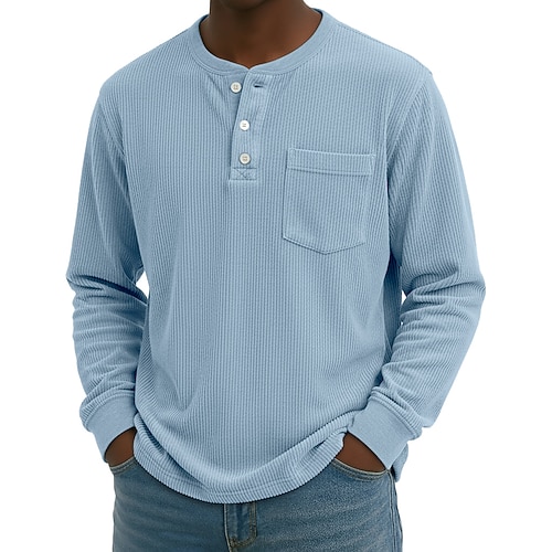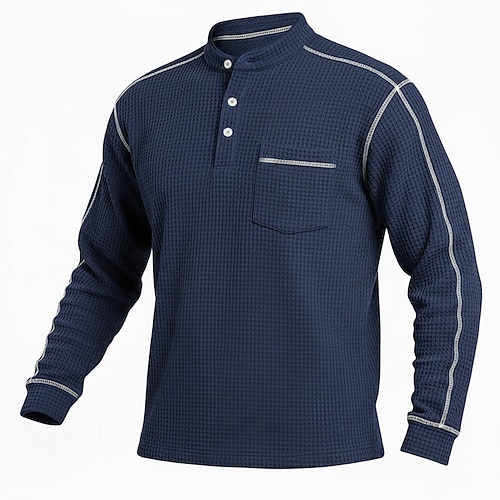 Per uomo Maglietta Waffle Maglietta Maglia Henley a nido d'ape Manica Lunga Henley Autunno Tutte le stagioni Tinta unica Testurizzato Casual Tasche Casuale Casa All'aperto Blu Rosso Blu marino