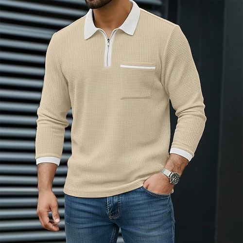 Per uomo Magliette Polo a Nido d'Ape Polo con zip a un quarto All'aperto Casual Zip a un quarto Manica Lunga Moda Moderno Tinta unica Testurizzato Lavorato a maglia Tutte le stagioni Vestibilit