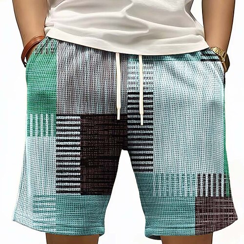 Per uomo Blocco di colori Patchwork Pantaloncini Waffle Pantaloncini da tuta Pantaloncini casual Misura del girovita medio Moda Casual Vacanza Jogging Allenamento Testurizzato Coulisse elastica in