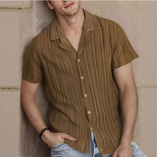 Per uomo Camicia Camicia casual Camicia con Bottoni Nero Bianco Cammello Albicocca Manica Corta Semplice Testurizzato Colletto cubano Casuale Abbigliamento casual alla moda Jacquard Abbigliamento
