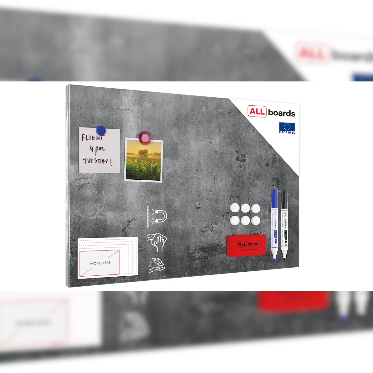ALLboards Metallische Magnettafel BETONMAUER ZEMENTMAUER 60x40cm Memoboard für jede Art von Magneten Magnetpinnwand + 4 Marker, 10 Magnete