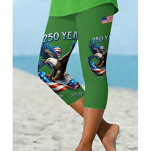 Giorno dell'Indipendenza Americana 250° Anniversario Maglietta Patriottica Pantaloni Capri Leggings Vacanze Hawaiana Capris Eleganti Vita Media Pantaloni Grafica Bandiera Nazionale Comfort Elastico