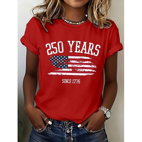 Camicia Patriotica Americana 250° da Donna Grafica Bandiera USA Vintage Tropicale Giornata Tops Regolari Giornata Stampa Rossa Primavera