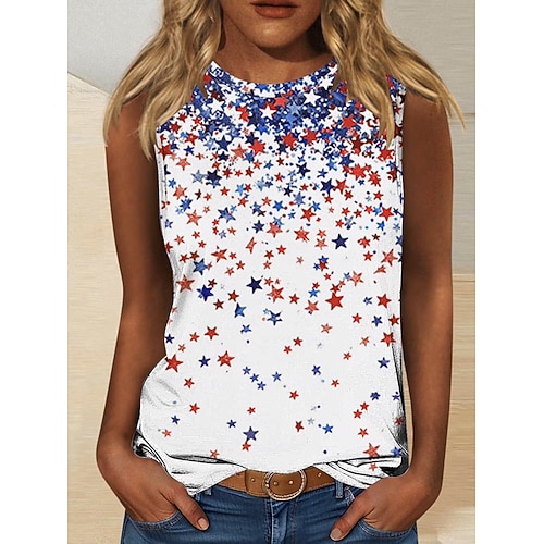 Giorno dell'Indipendenza Americana Per donna Canotta Grafico Bandiera Vintage Elegante Classico Senza Maniche Girocollo Top Regolari Quotidiano Blu Rosso Estate Primavera