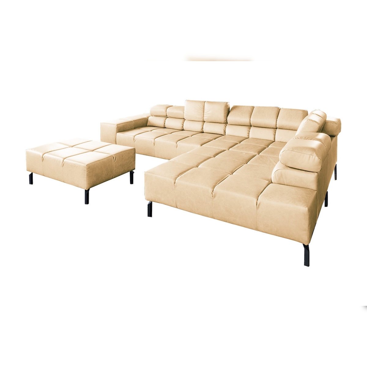 KAWOLA Sofa NELSON Ecksofa Leder beige mit motorischem Sitzvorzug und Hocker Recamiere rechts