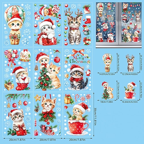 9 fogli adesivi rosa natalizi 3d per finestre, babbo natale, casa decorazioni per porte in vetro a forma di fiocco di neve per decorazioni natalizie