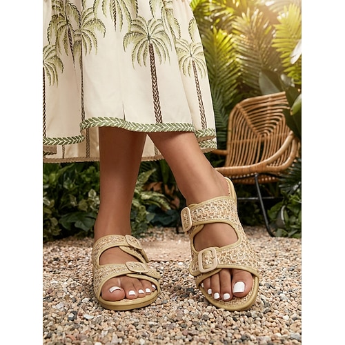 sandali infradito intrecciati verdi da donna - sandali bassi tropicali con doppia fibbia per crociere, gite sull'isola abbigliamento da spiaggia