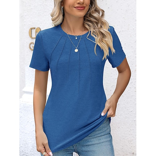 Per donna maglietta Liscio Informale Manica corta Girocollo Top regolari Giornaliero Bianco Blu Viola Verde Estate