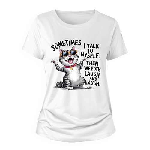 Per donna Maglietta Gatto Lettera Casual Manica Corta Girocollo Top Regolari Quotidiano Stampato Bianco Blu Beige Estate
