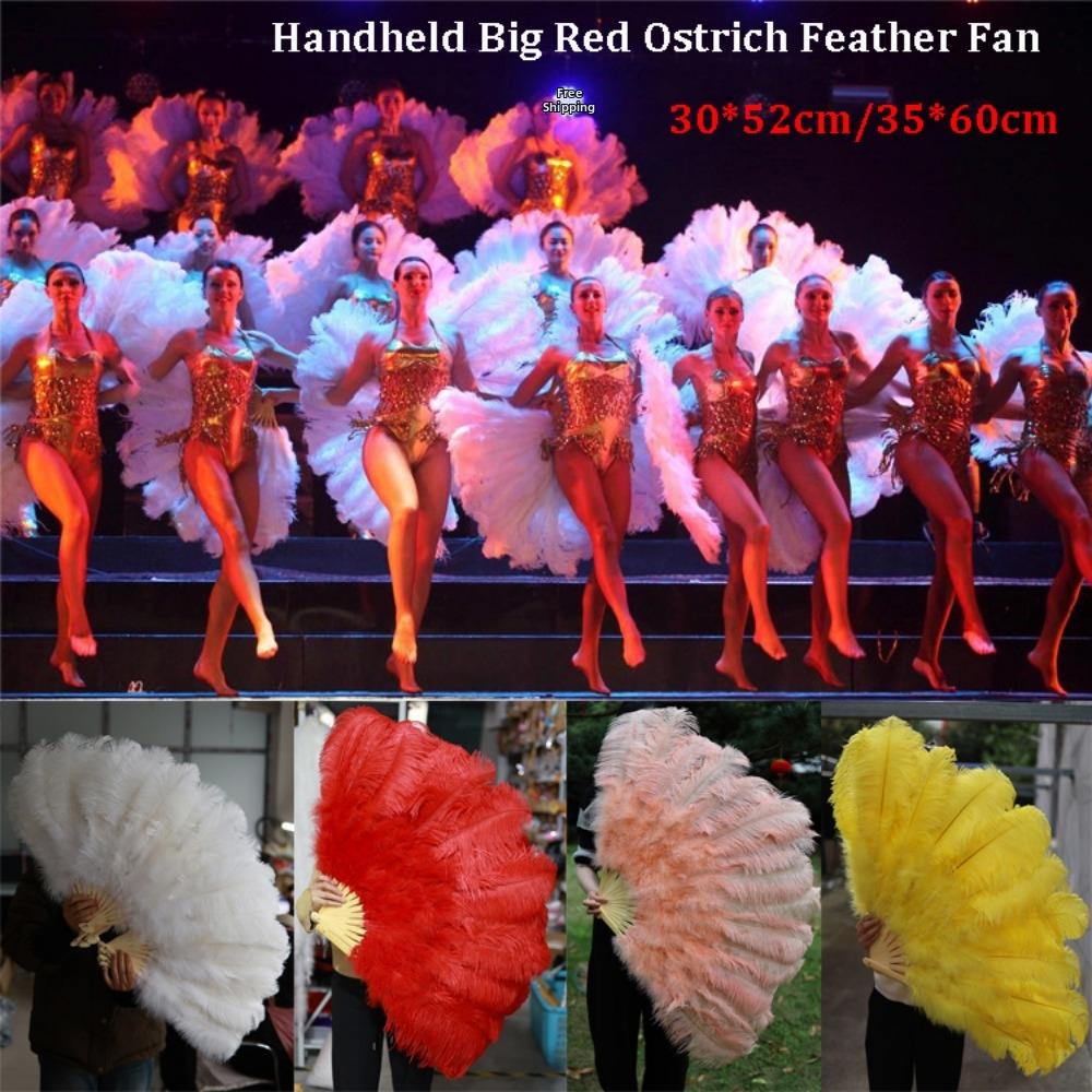 Big Red Ostrich Folding Fan 30*52cm 35*60cm Performance Feathers Fan Crafts Handheld Feather Fan 35cm