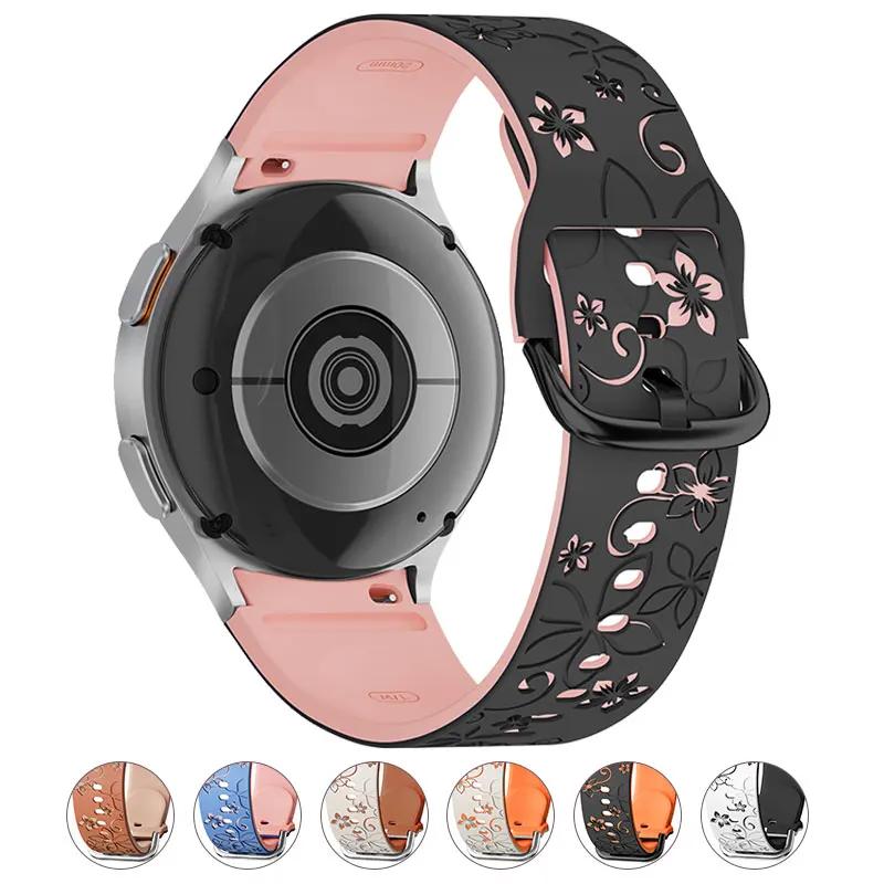 Cinturino per orologio per Samsung Galaxy Watch 7/6/5/4 40/44mm, Watch 6 Classic 43/47mm, Watch 4 Classic 42/46mm Silicone Sostituzione Cinghia Regolabili Chiusura moderna Stampa floreale Polsino