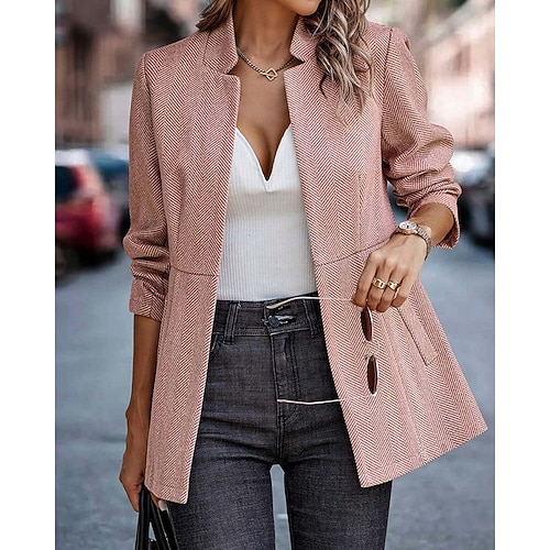 Per donna Blazer Confortevole Volant Patchwork Elegante Moda Classico Moderno Scuola Formale Ufficio Lavoro Cardigan Lungo Collo alla coreana Vestibilità regolare Manica Lunga Capispalla Rosso