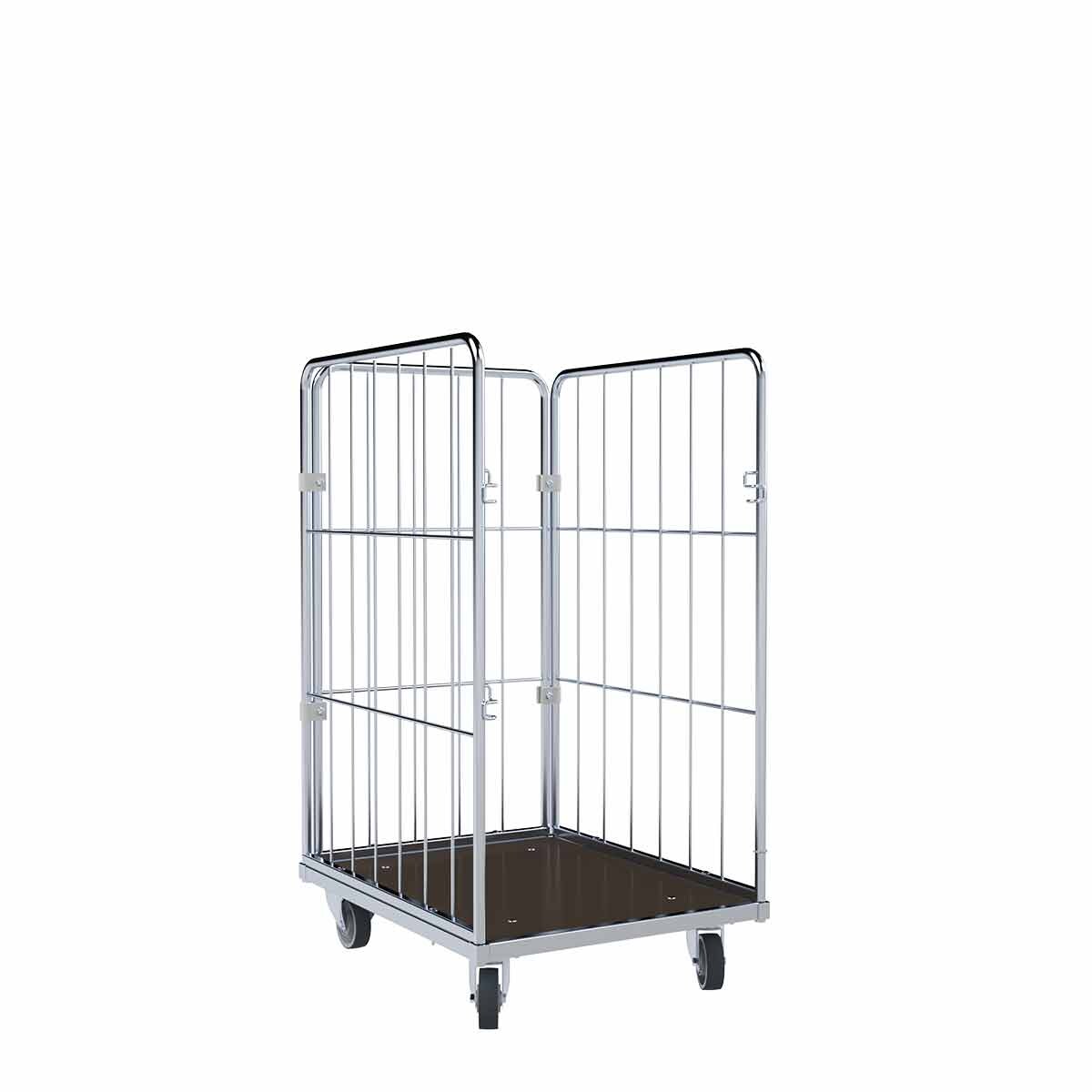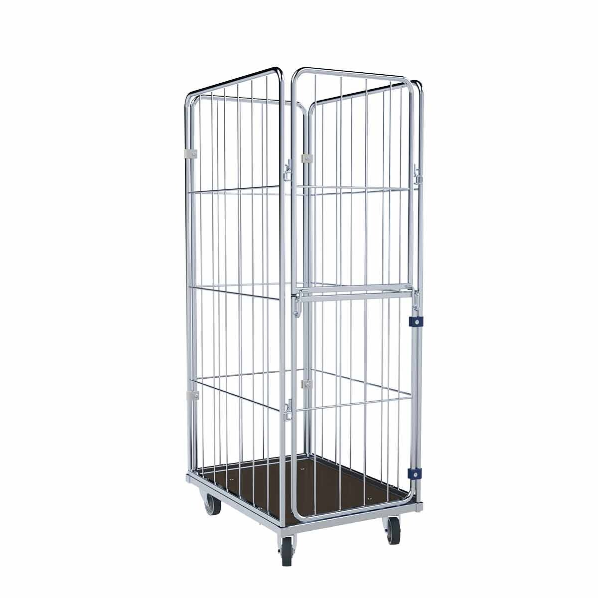 Oswald Transportgeräte Wäschewagen Nutzhöhe 1.370 mm, Holzboden, 4-seitig, Vorderwand klappbar/schwenkbar, 600 x 740 x 1.520 mm, 400 kg
