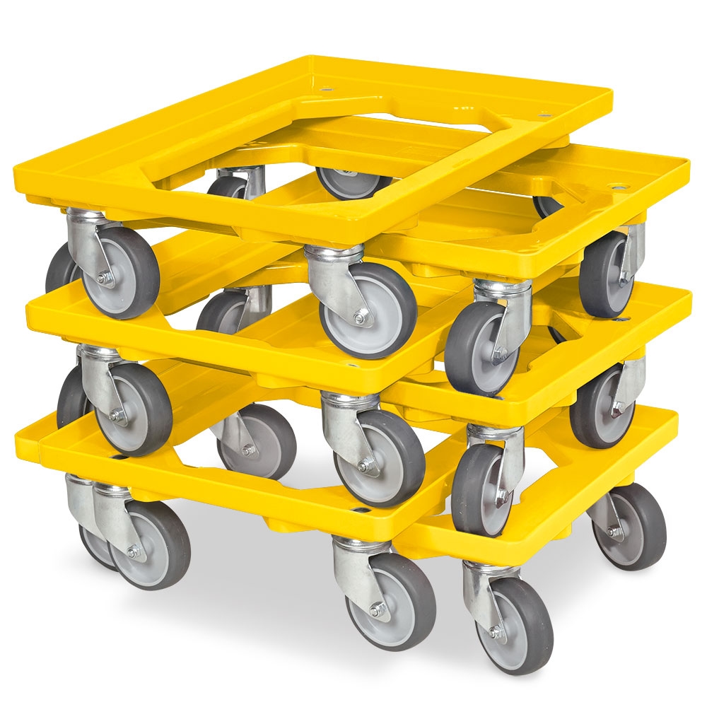 BRB 6x Logistikroller/Kistenroller für Behälter 600 x 400 mm, Tragkraft 250 kg, gelb