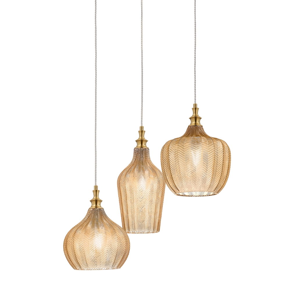 Gea Luce Cleofe - 3-flammige Pendelleuchte aus transparentem Braunglas und Messing - 3XE27 max. 3X60W, dekorativer Vintage-Stil, IP20