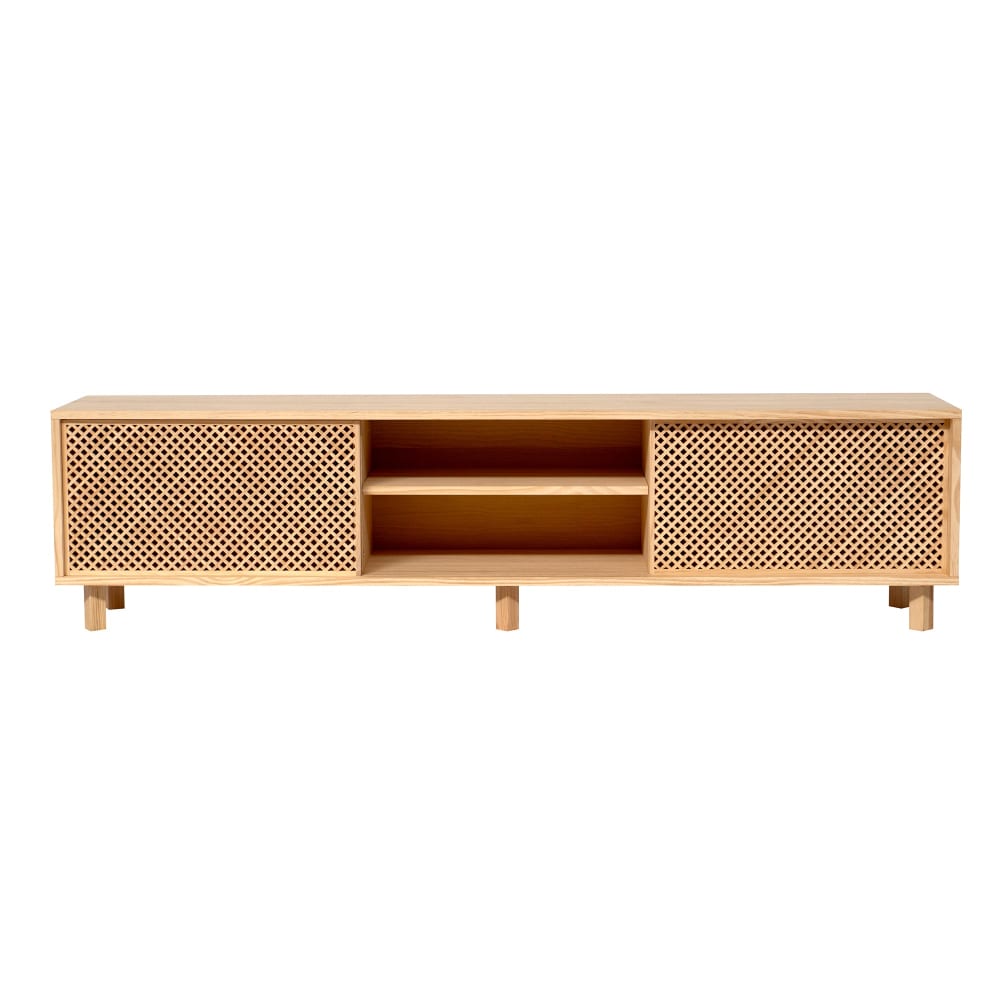Mobile TV con 2 ante in legno massello naturale - 180cm Non verniciato
