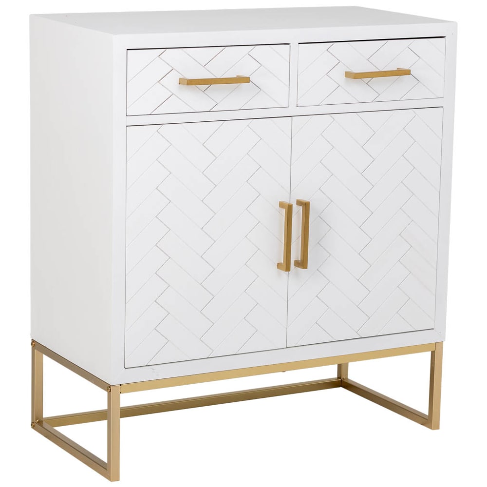 Credenza con 2 cassetti e 2 ante in legno e metallo bianco 80x39,5x89