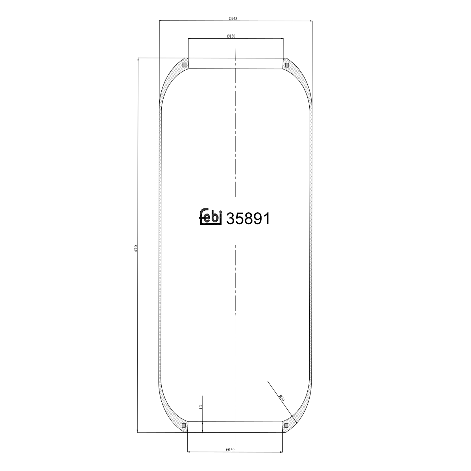 FEBI BILSTEIN Federbalg, Luftfederung 35891 Universal ohne Kolben 240mm für RENAULT TRUCKS IRISBUS IVECO 0500055042 008139068 08139068