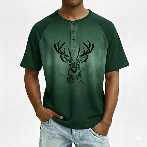 Per uomo Grafico Renne di Natale Maglia Henley Manica Corta Moda Designer Retrò Vintage Quotidiano All'aperto Estate Primavera Primavera Autunno Marrone Blu scuro Verde scuro Henley Maglietta Henley