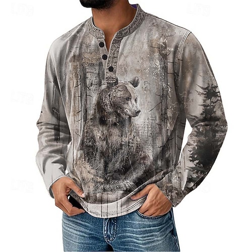 Per uomo Grafico Animale Maglia Henley Manica Lunga Moda Quotidiano Retrò Vintage Casuale Ferie Uscire Autunno Primavera Autunno Autunno Inverno Blu Viola Cachi Grigio Henley Maglietta Henley